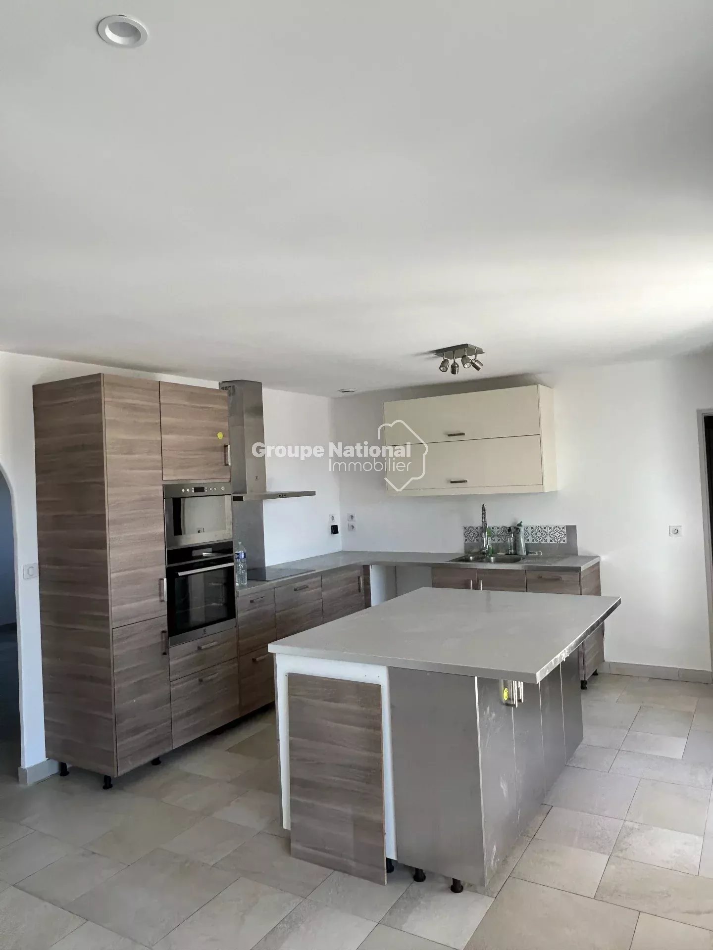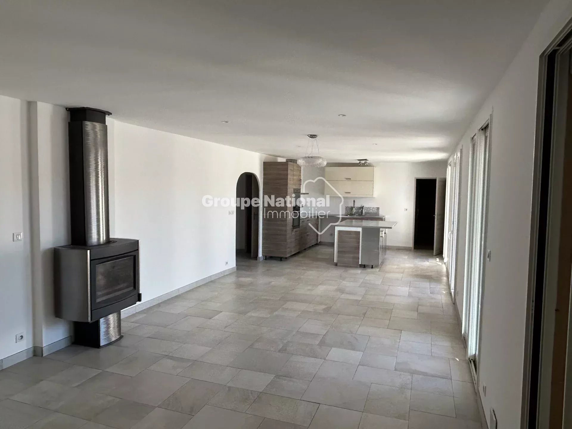 Villa lumineuse de plain-pied de type T4 de 135m2 comprenant un beau séjour/cuisine, cellier, 3 chambres, salle d’eau et WC séparé.