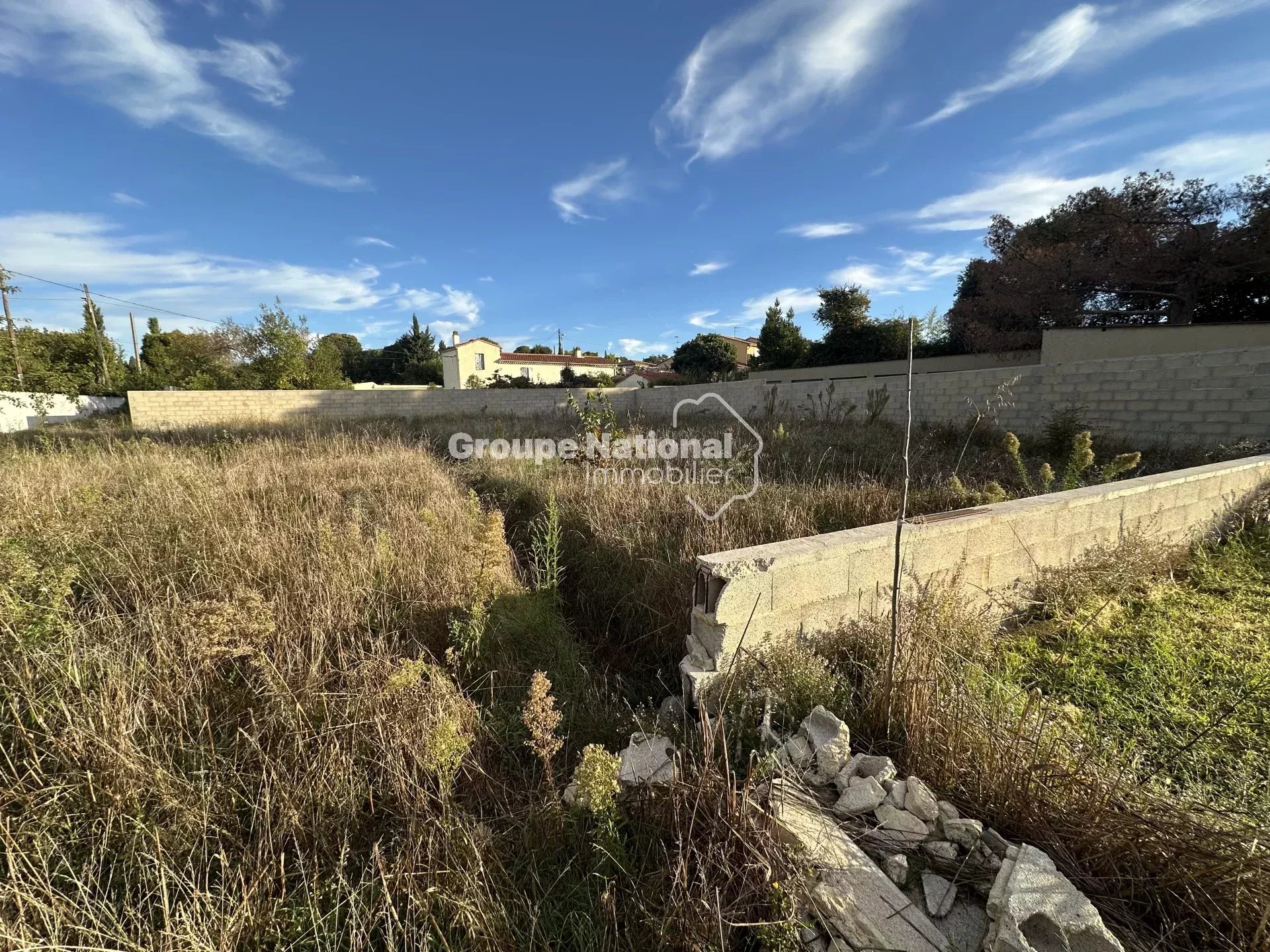 SALON-DE-PROVENCE : Les Viougues. Terrain plat constructible de 400 m² environ sans vis à vis, vue dégagée et dominante. Possibilité de construction d'une maisons en r+1 de 100m² avec garage, le permis de construire est déjà accepté et purgé des recours. Viabilité en bordure. Prévision du budget de construction avec garage environ 185 000€.